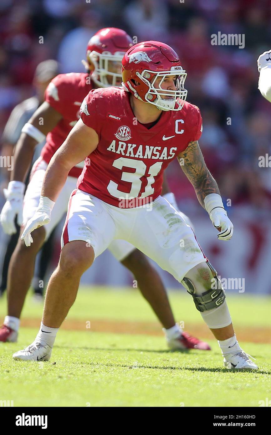 October 16 2021 Razorback Linebacker Grant Morgan 31 Settles Along The Line Auburn Defeated Arkansas 38 25 In Fayetteville Ar Richey Miller Csm Stock Photo Alamy